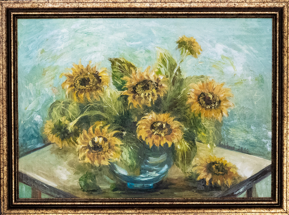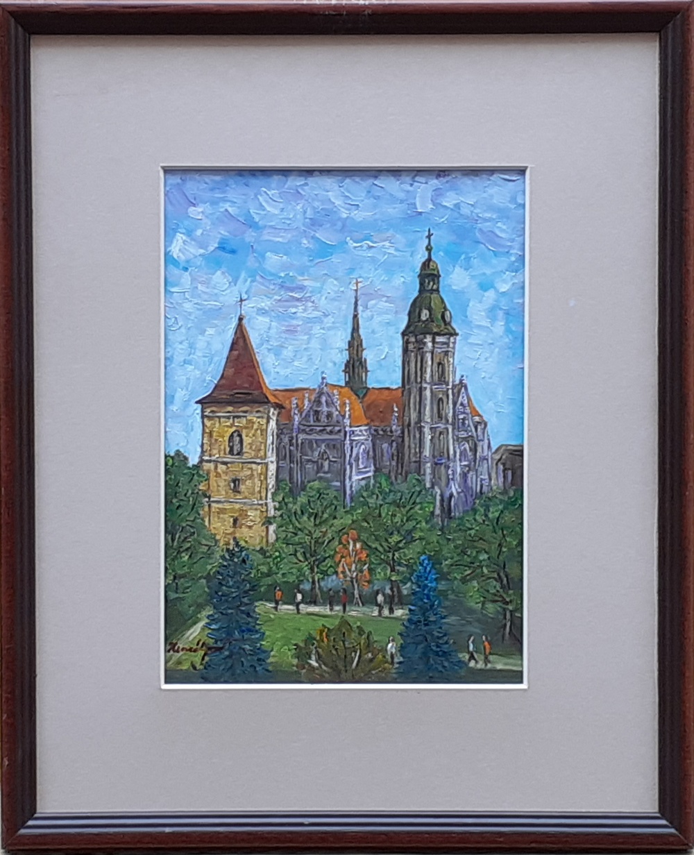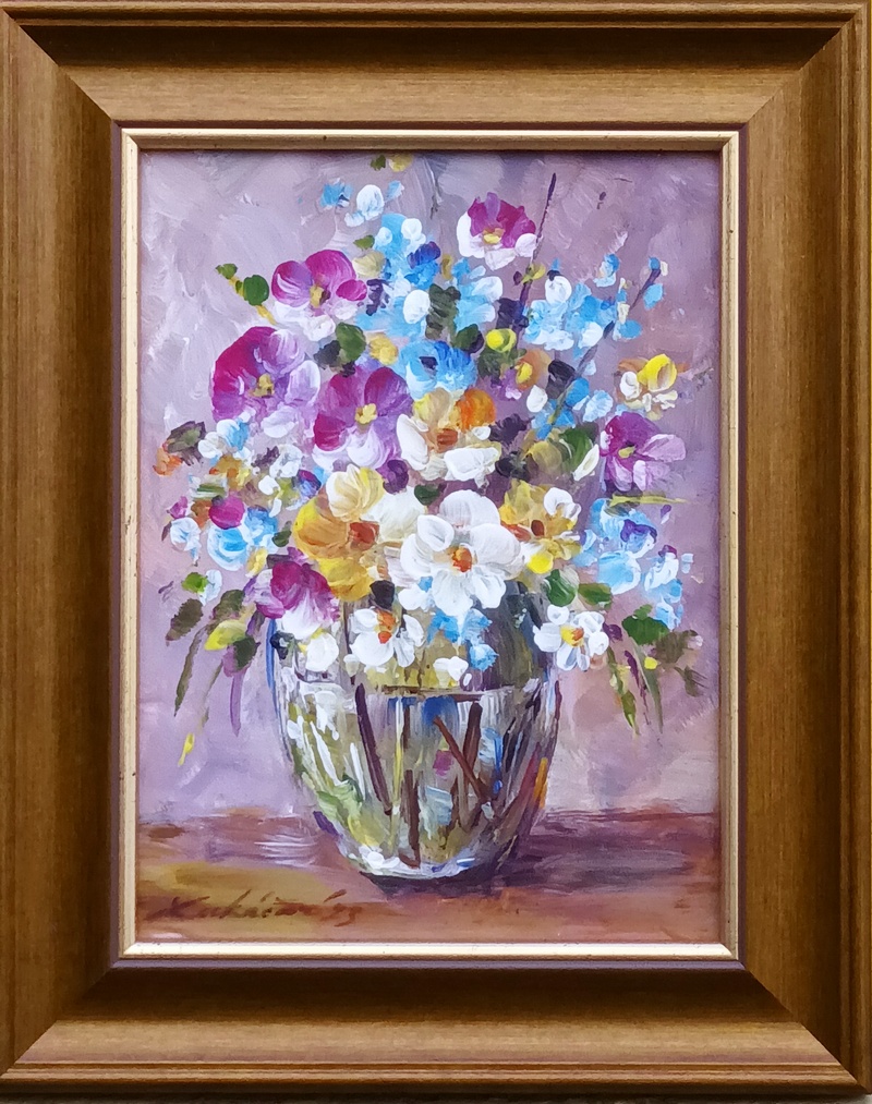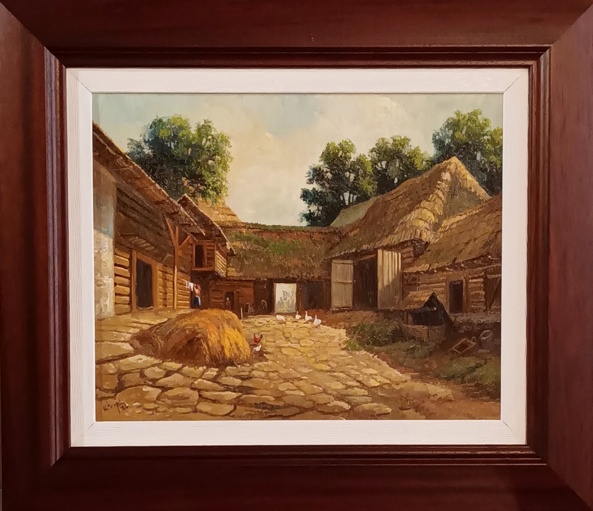 olejomaľba na sololite, zarámované v ozdobnom drevenom ráme